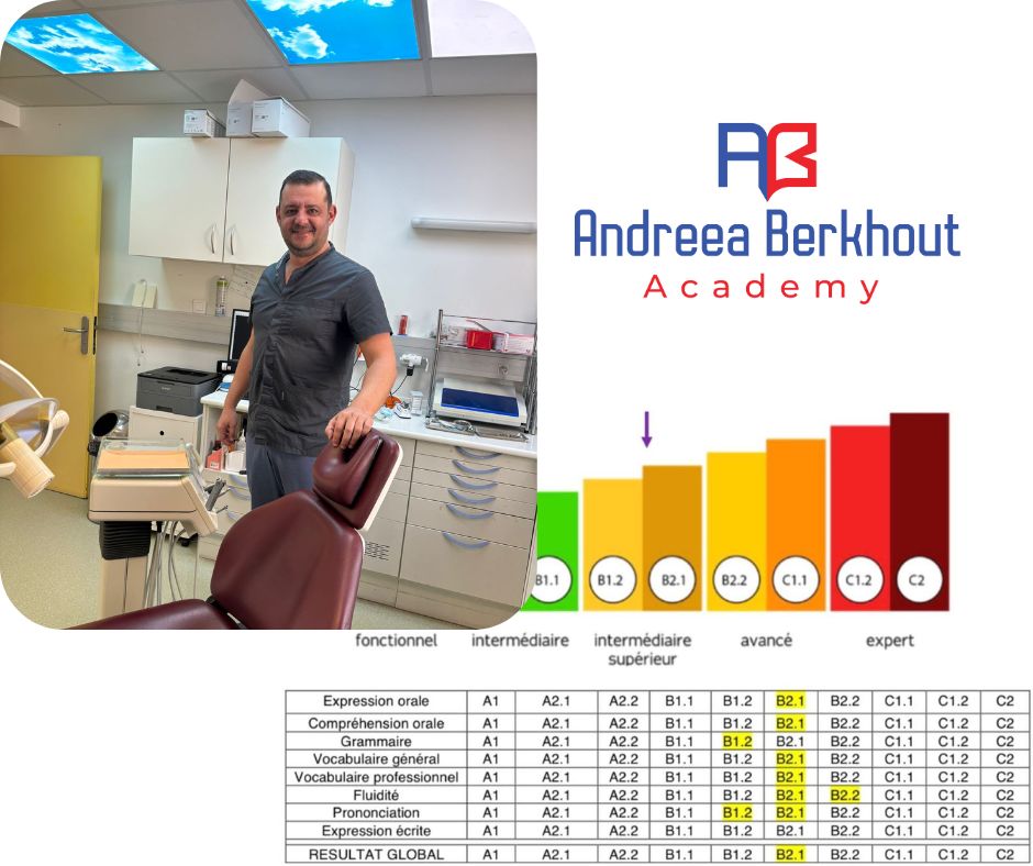 A year ago, he was studying French at Andreea Berkhout Academy. He passed his exams, Moving People facilitated his relocation to Bourbonne-les-Bains, and today his pace and results make many doctors raise their eyebrows.