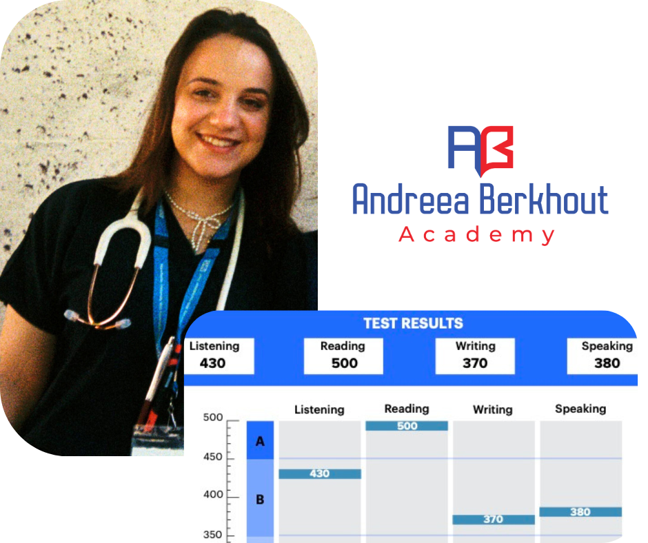 Immense pride at Andreea Berkhout Academy! Our student, Ioana, achieved a perfect score on the OET Medicine exam.